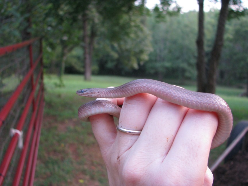 Small earth snake we found under a pallet. Yes, I am holding it. They eat small invertebrates, not people, so I felt pretty safe!