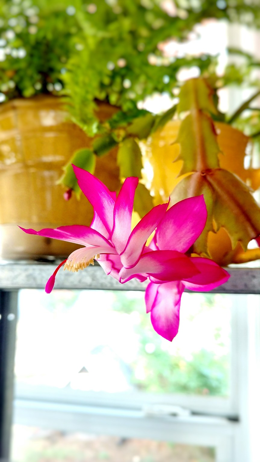 I used to have a huge Christmas cactus and it was glorious. When my oldest was about three, it mysteriously flew off of its shelf and landed upside down, shattering off most of the leaves and all but about two of the blooms. It was a sad day in Plant Land.