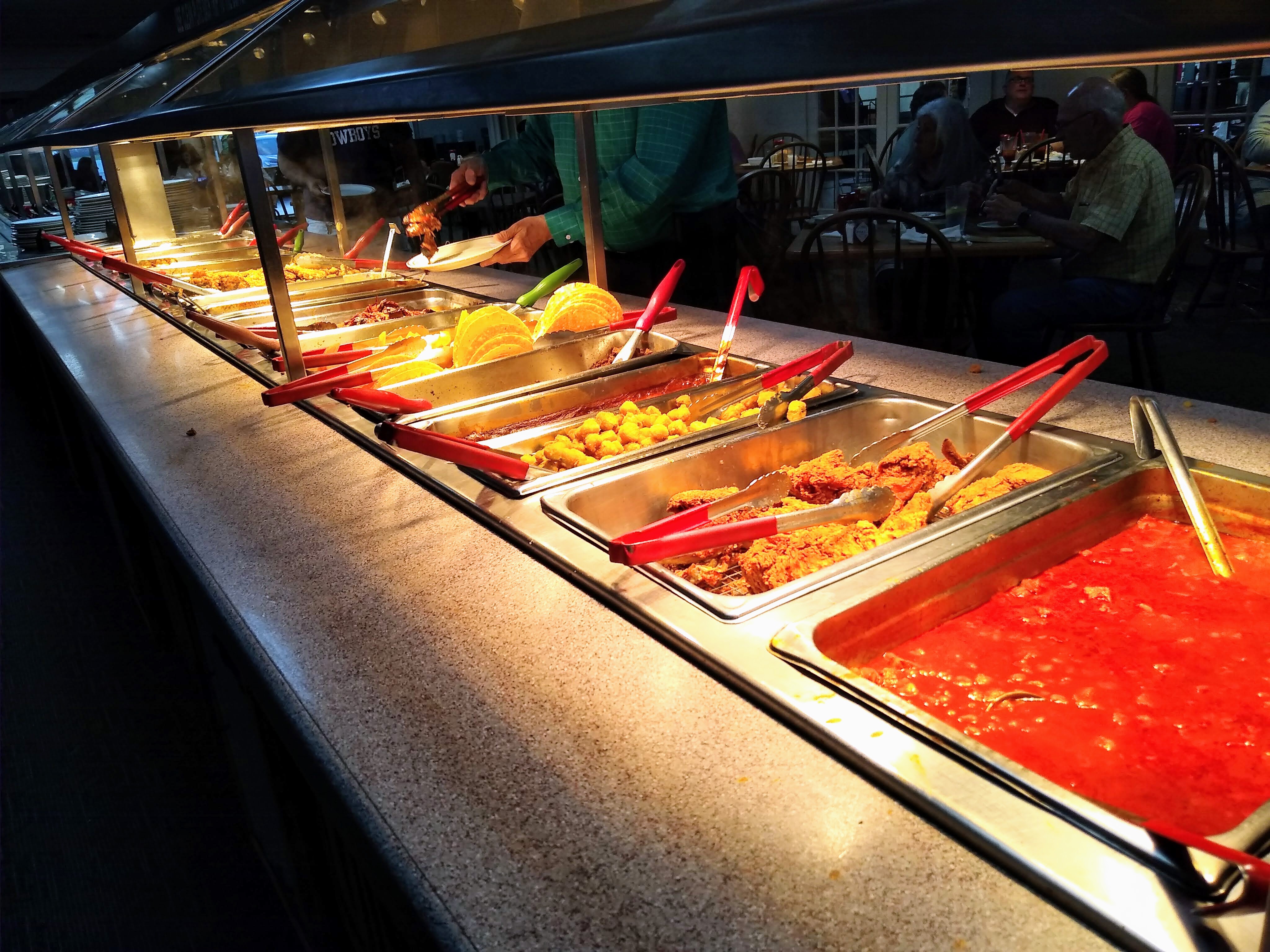 There is this place. A very magical place that sits at the intersection of Highway 84 and Interstate 45 in a little town called Fairfield, Texas. It is home to a restaurant called Sam’s Original Restaurant & BBQ. It also houses the longest buffet bar that I’ve ever seen in my life. The impressive length of the buffet, however, pales in comparison to the quality and sheer amount of the food that is contained within its copious collections of steam trays and canisters. On any given day, you have the choice of at least six main entrees, and this isn’t including the sides (at least five) or the immense salad and soup bar. There is also a heated table just for the cobblers and a chiller just for the pie slices.