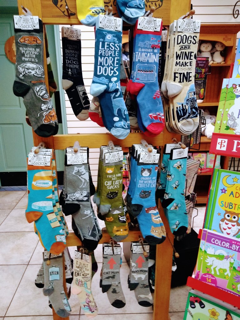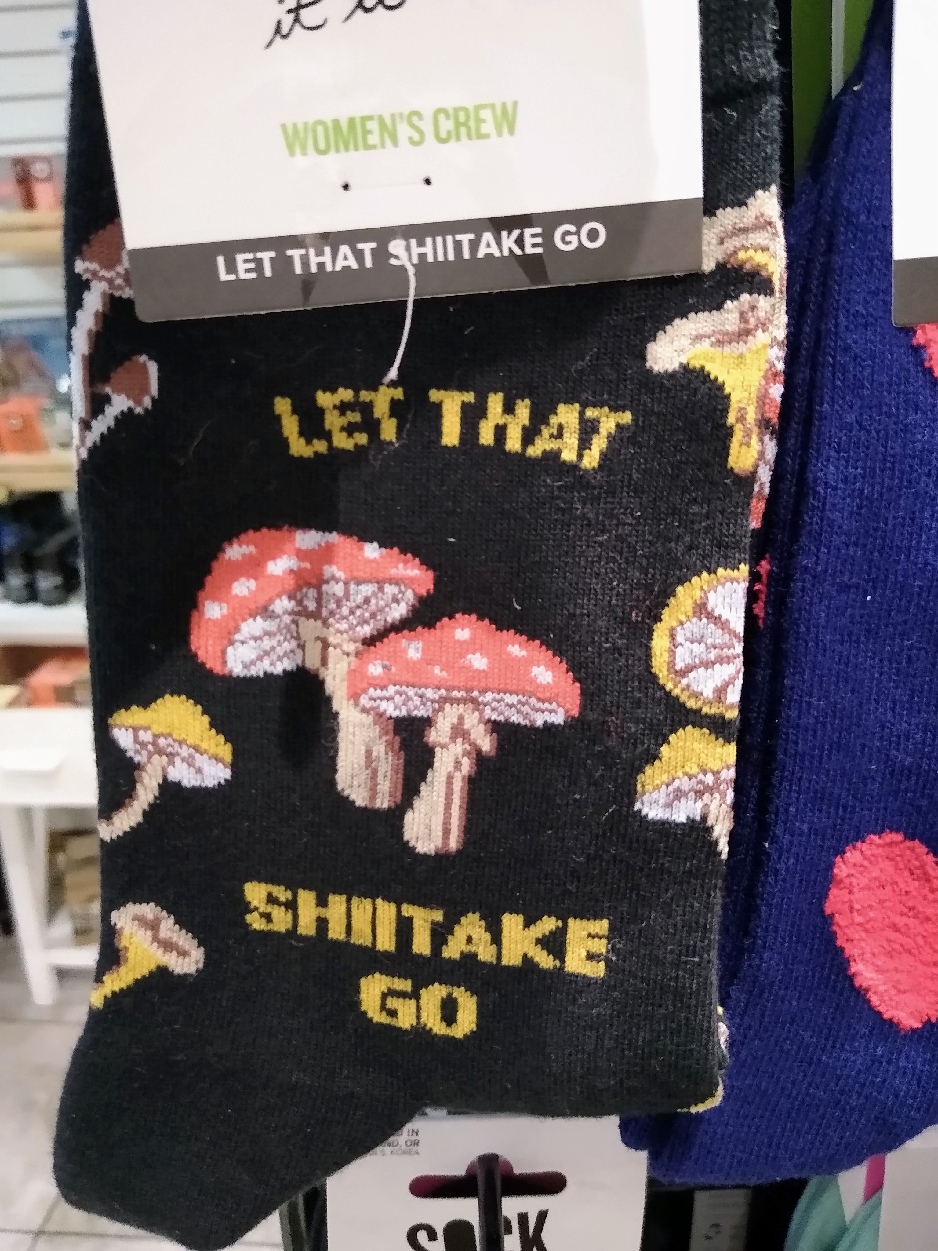 After you roll yourself away from the food, there’s another room with gifts and a lot of “this n’ thats”. Socks! Stickers! Retro toys! Pajamas! There’s something for everyone. My particular favorite was the shiitake socks: